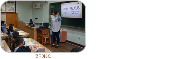 창의적재량활동으로 중국어 수업을 실시하고, 방학 중에는 중국어 교실을 열고 있다.