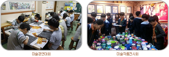 3학년부터 6학년까지 미술교과 전담교사를 배정하여 어린이들의 심미적 재능을 향상시키고 해마다 작품 전시회를 통하여 창의적인 작품 활동을 활성화하는 기회를 제공하고 있다.