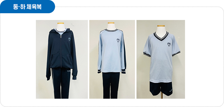*하늘색 셔츠, 진회색 반바지(춘추복용) |